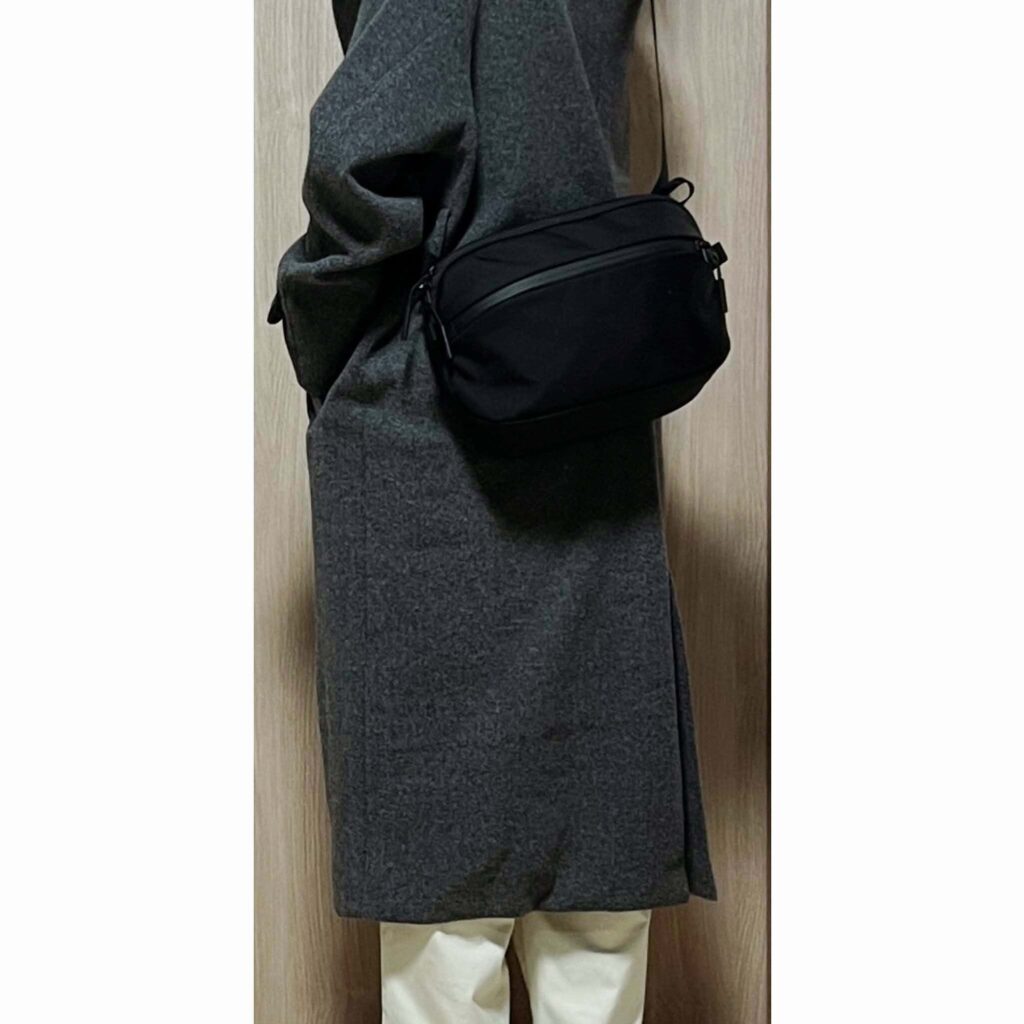 フードの下にベルトがあって外しにくい時や、バッグの上から上着を着てからバッグだけ外したい時ももちろんいける。