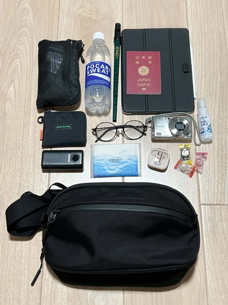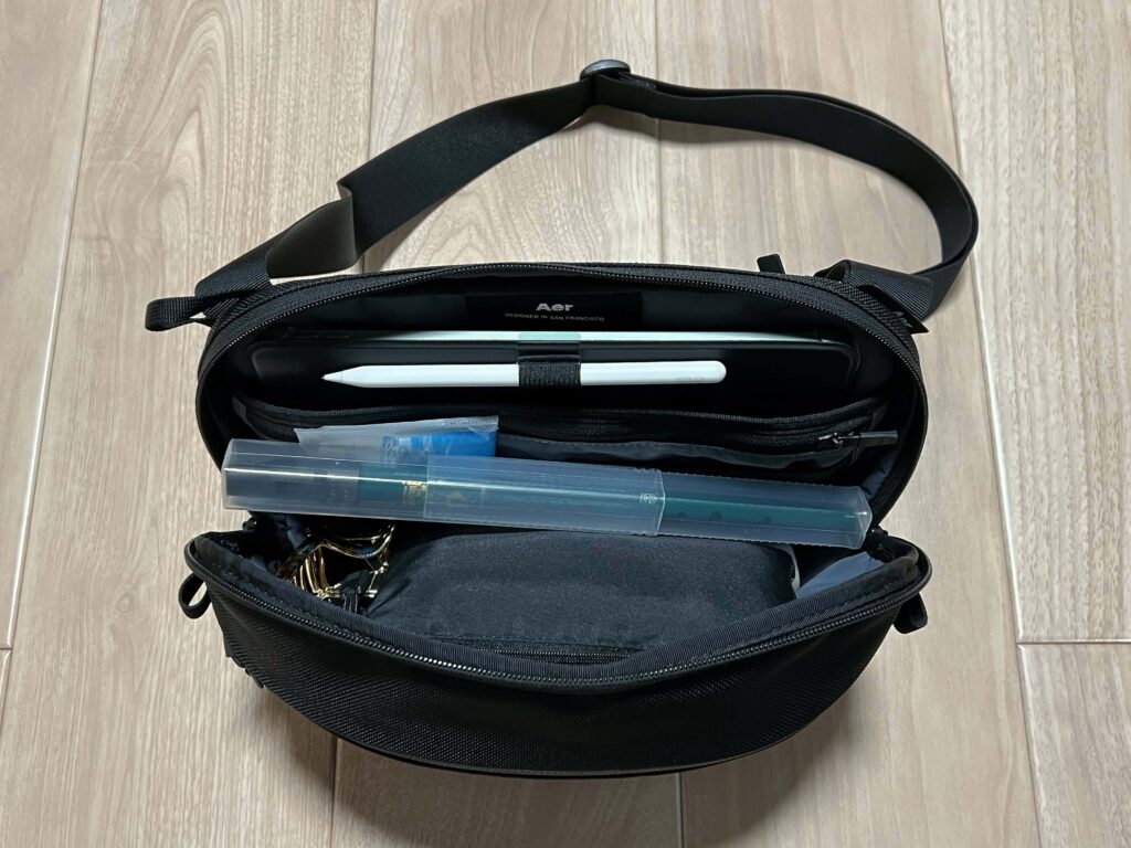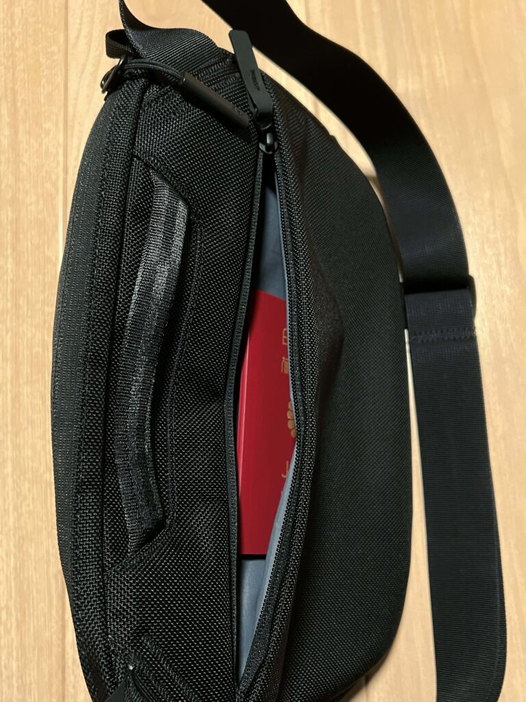 ベルトも丈夫だとはいえパッドがないので、入るからといって調子に乗って入れまくると片肩に負担がかかって貧弱だと昼過ぎには肩とか背中がやや痛い。