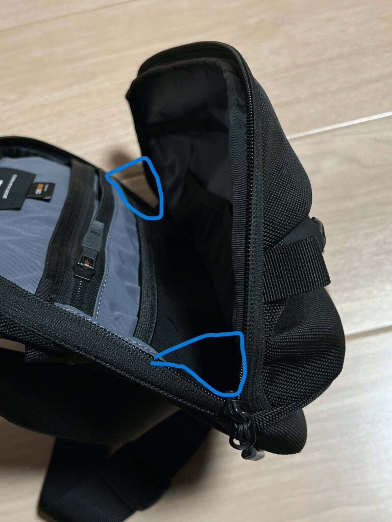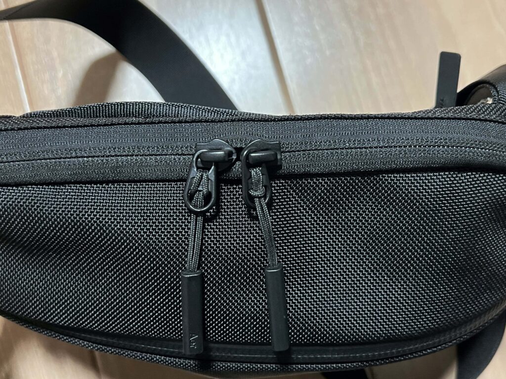 フロントポケットのみ止水ファスナーなので、雨天時もいい感じ。ただ固くてやや開けにくい。